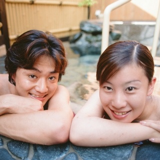 女性には「露天風呂ウェアーゆゆぎ」の貸し出しをしてます♪