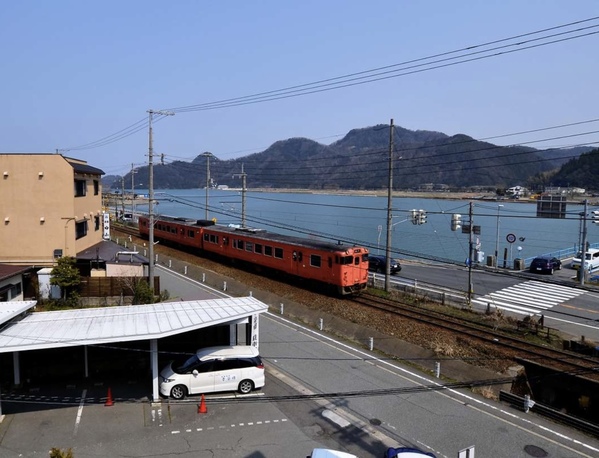 貸切露天風呂からは円山川が一望でき、冬は雪化粧した山々や