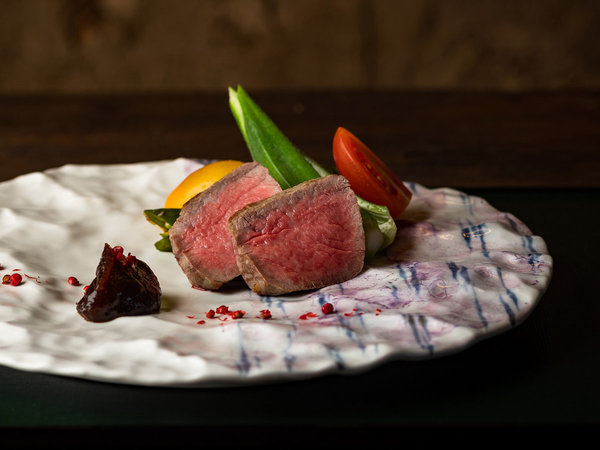 「但馬牛」のステーキや旬の地魚など、全10品を一品ずつ丁寧にお出しします。
