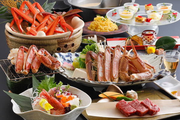 【日帰り冬物語コース】カニ鍋&茹でカニ&焼カニ☆彡但馬牛ステ-キまで付いて納得◎温泉三昧くつろぎの冬旅を♪